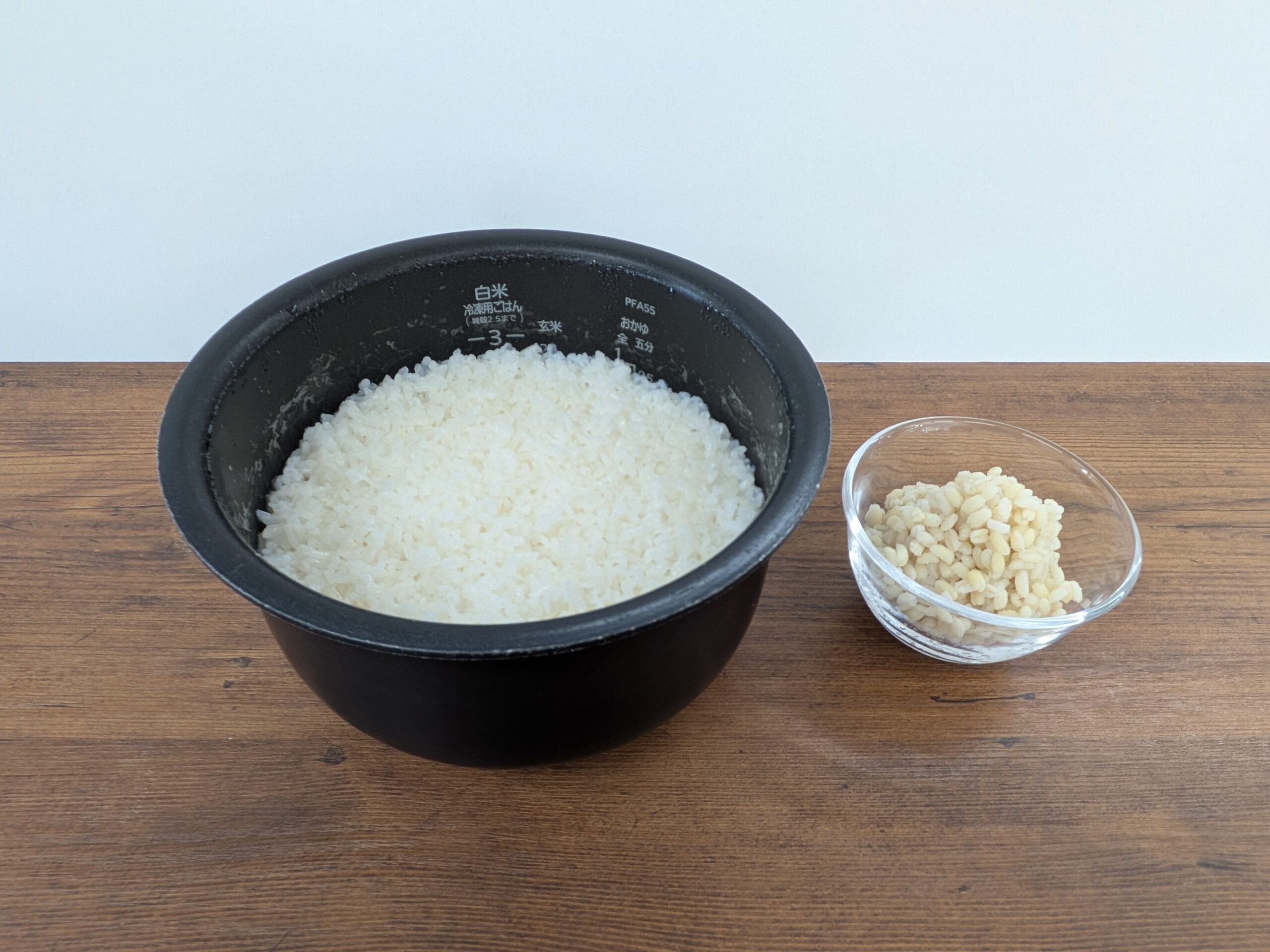 二つ目は、もち麦と白米が混ざらずきっちり炊き分けられる方法です。