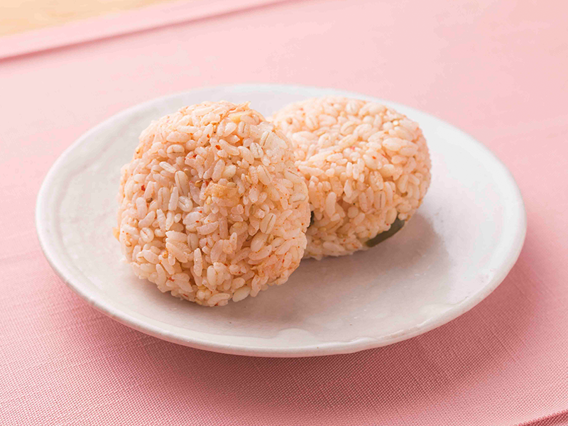 もち麦のぷちぷちした食感とキムチの辛さがクセになるおにぎりに仕上げました。