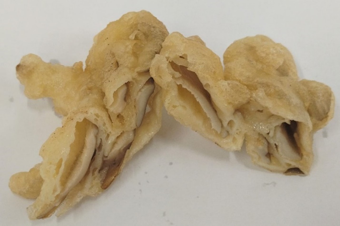 - 大麦粉αを天ぷら粉に添加することで衣がしっかり付着し、衣率が良くなります。