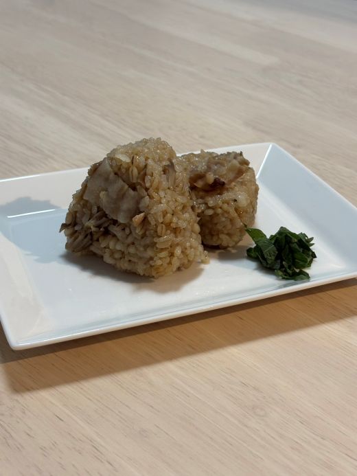 焦がしきのこと豚バラのおにぎり
