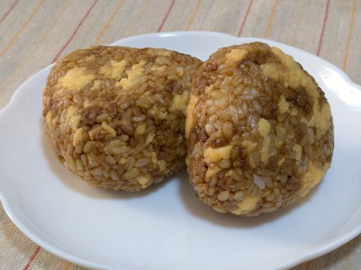 肉みそと玉子のもち麦おにぎり