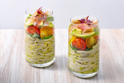 彩り野菜のバジル香るカフェ風もち麦パスタサラダ